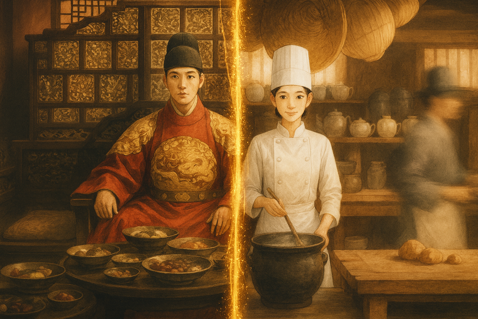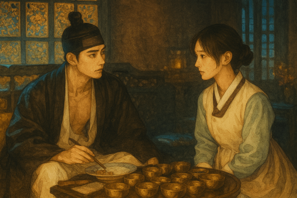 このタイミングで、ジヨン(現代から来た天才シェフ)はただの“異邦人”ではなく、 情報と直感を武器に動き出す。 側近の変化、厨房内の異変、宮廷の空気── 彼女は過去の知識と照合しながら、危機の到来を察知する。