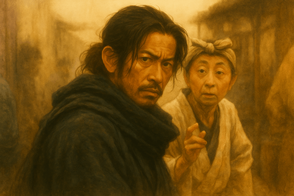 愁二郎は答えない。ただ、剣を抜く。 映画では、この瞬間から音楽が完全に消える。 呼吸、足音、布の擦れる音、そして刀が鞘を離れる響き── 観客はただ“剣と剣の思想”を凝視させられる。